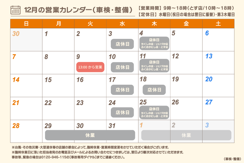 ※HPに記載している割引・特典は、お電話や予約フォームからご予約を頂いたお客様にのみ適用させて頂きます。【年末年始のお問い合わせについて】2025年12月29日〜2026年1月4日の期間について、以下の通りご案内いたします。・お電話でのお問い合わせ:この期間はつながりません。・メールでのお問い合わせ:期間中にいただいたメールは、2026年1月5日以降に順次お返事いたします。・板金の見積もり:この期間は行なっておりません。