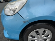 | バンパーの半分にキズが入っており、 ヘッドライトにも薄いキズがありました。 ヘッドライトは専用の磨きで綺麗になり バンパーは1枚塗装をさせていただきました。 |