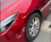 | 修理担当者のコメント | 軽度の傷でしたが、2パネルにわたってましたので、 各パネルを部分途装で仕上げました。 メタリック途装ですが、ボカシを上手く入れることで きれいに仕上がり、お客様も値段と仕上りの両方で 満足されてました。 |